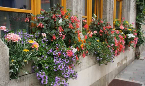 再看這一張照片,室外的窗臺上也是裝滿了花盆和鮮花,難道德國人都不開窗戶的嗎?當(dāng)然不!因?yàn)樗麄兊拇皯羝匠8揪筒粫騼?nèi)或向外完全平開!最多是內(nèi)倒通通風(fēng),而窗戶內(nèi)倒時候根本就不影響這些綠植!